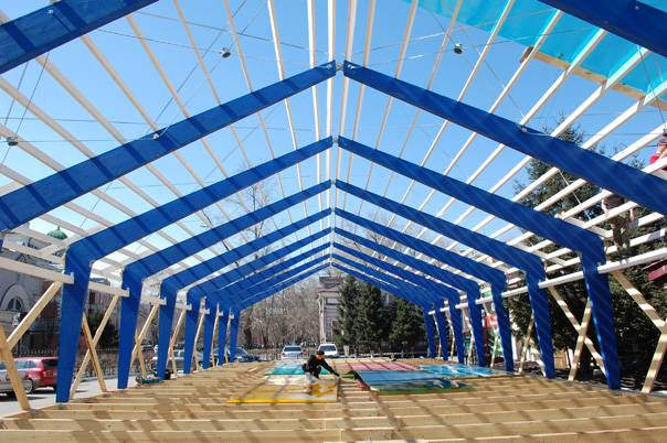 Летняя веранда так же была оформлена в экзотическом восточном стиле. Большое внимание уделили вопросам экологичности и долговременности покрытий. Необходимо было покрытие, способное выдержать большие перепады температур. Для решения этих задач, была использована декоративная лазурь Lignovit Lasur и кроющее покрытие Lignovit Color.
