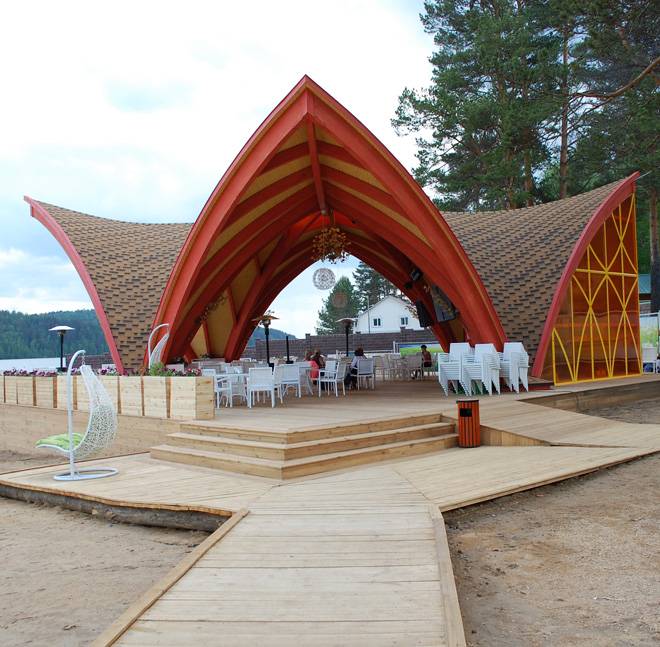 Большие перепады температур и высокая влажность пагубно влияют на ЛКП. Необходимо было подобрать продукты отвечающие высоким требованиям. Внешние элементы конструкции кафе были обработаны надежным кроющем покрытием для древесины, способным выдержать экстремальные погодные условия - Lignovit Color. Помимо входящих в состав светостойких пигментов, защищающих древесину от УФ- излучения, покрытие прекрасно защищает от поражения плесневым грибком и синевой.