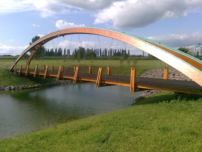 Реставрация деревянного настила и несущих конструкций моста маслом Pullex Bodeol и лазурью Pullex Plus Lasur для восстановления внешнего вида и защиты древесины от атмосферных и биологический воздействий.