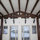 Для покрытия стен на открытой веранде выбрали светлый оттенок RAL 1015 / Hellelfenbein, кроющей краски Lignovit Color. Как и вся линейка водорастворимых продуктов ADLER Lignovit, краска является экологичной и предназначена для поверхностей как внутри, так и снаружи помещения.