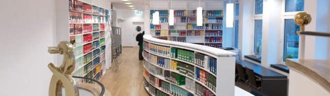 Если книга является лучшей упаковкой для наших культурных сокровищ, то библиотеки являются лучшией упаковкой для книг. Общая протяженность стеллажей в библиотеке университета Мюнстера составляет 3000 метров. Для криволинейных элементов стеллажей было решено использовать белый цвет, ADLER Pigmolux DC. Что делает эти волнообразные стойки очень элегантными.