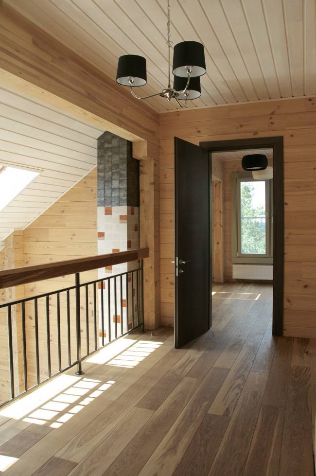С помощью этих материалов был достигнут желаемый результат: сохранить натуральный вид древесины, которая создаёт неповторимую атмосферу внутри деревянного дома и создать красивый стильный дизайн с изюминкой.