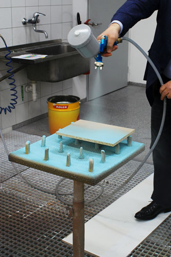 В практической части семинара участники имели возможность нанести бейцы ADLER (Spritzbeize, Rustica, ADLER Positiv Plus), высококачественные прозрачные полиуретановые лаки на акрилатной основе (Legnopur, PUR Strong), кроющие покрытия Pigmopur и Pigmocryl, покрытия с эффектом бетона Betoneffekt и металлическим эффектом (Aquafix Ferro).