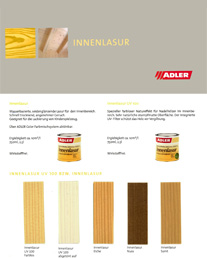 ADLER Innenlasur UV 100 - водорастворимая паропроницаемая лазурь для древесины с превосходной устойчивостью к пожелтению для внутренних работ. В состав входят эффективные светостабилизаторы,чем обеспечивается уникальная долговременная защита от ультрафиолетового излучения. Сохраняет естественный облик древесины хвойных пород. Также сохраняет способность «дышать» и испарять лишнюю влагу, регулируя влажность древесины.